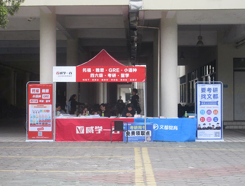 广工-威学一百&文都考研辅导培训线下推广 广工体育区中心田径场西北外侧 威学一百-一站式国际教育服务,涵盖托福·雅思·GRE·小语种·四六级·考研·留学等 文都教育-考研用书免费领取
