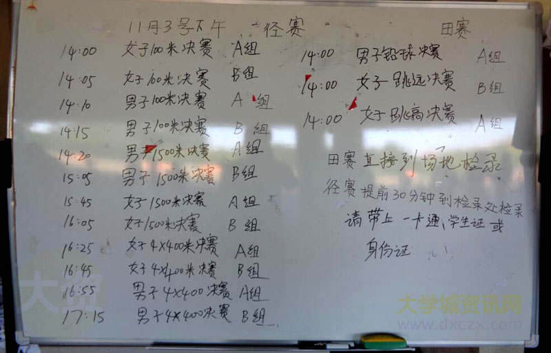 | 校运会第一比赛日下午将进行的项目和赛程时间表 | ||||||