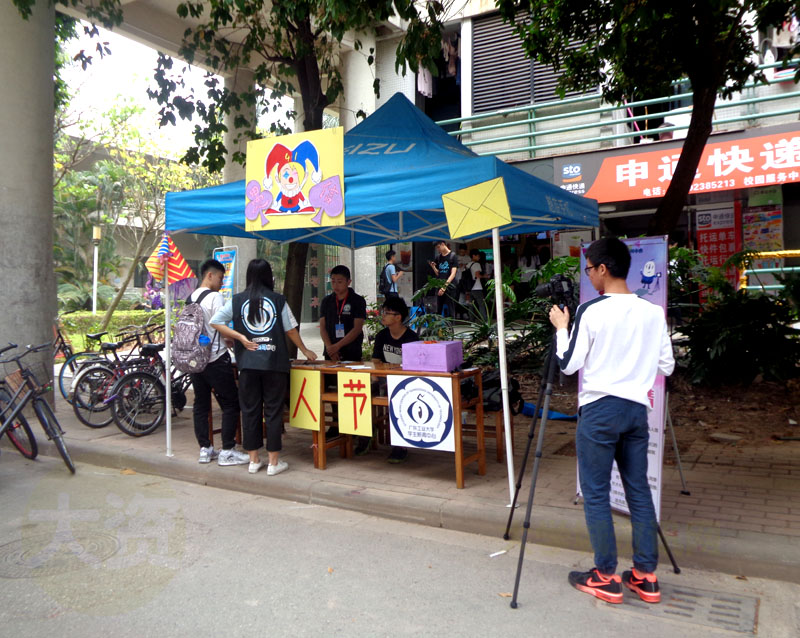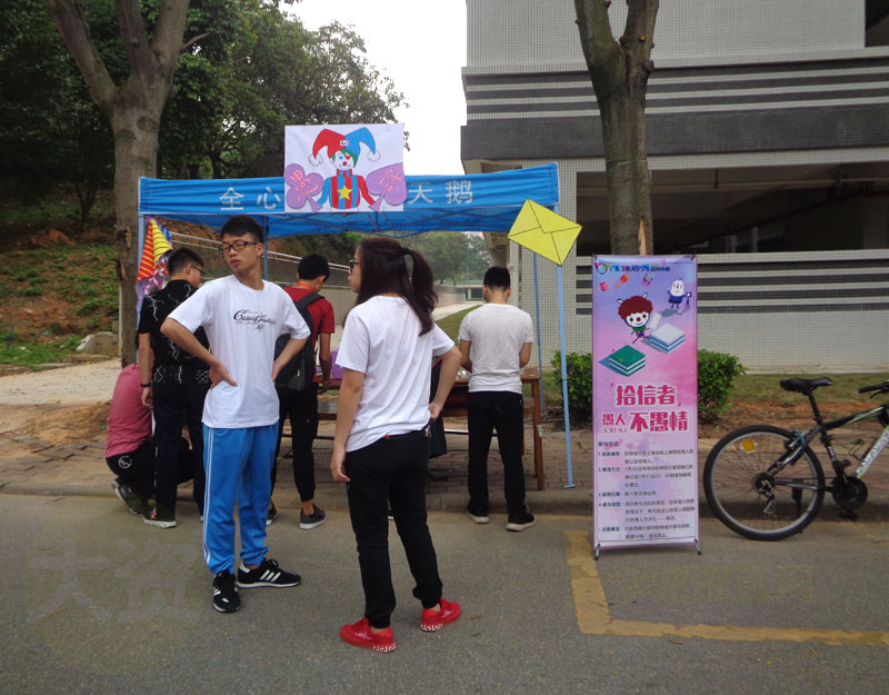 | 校学生新闻中心搞的“拾信者?愚人不愚情3.30-4.1”活动正在摊宣 | ||||||