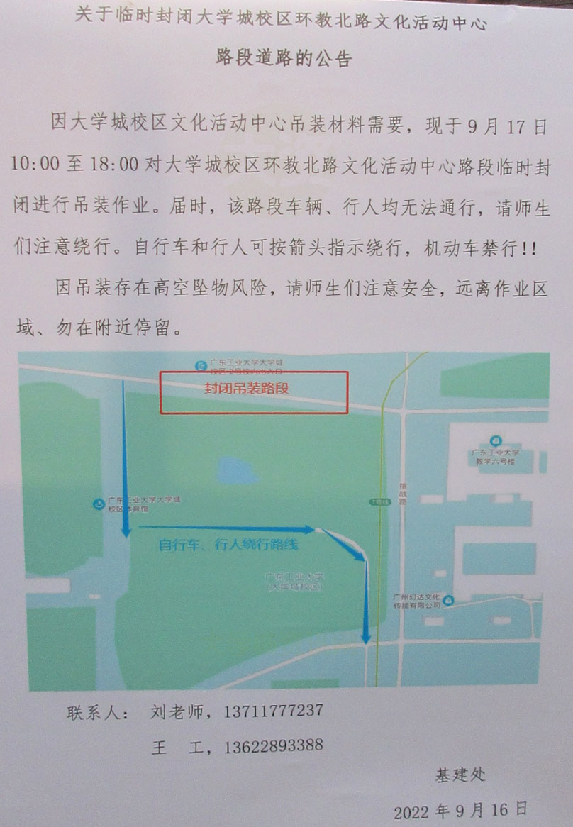| 文化活动中心二楼北侧空间完善建设吊装材料环教北路从上午开始暂不能通行 持续到傍晚18点 | ||||||