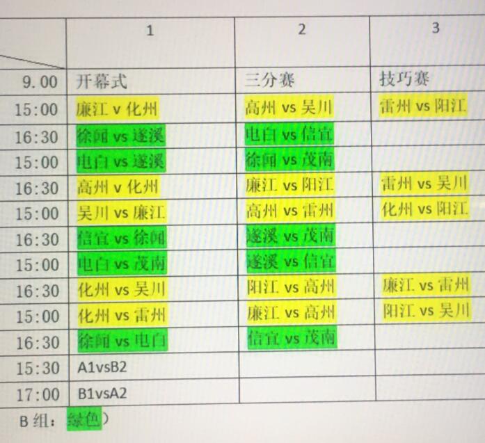 A组 廉江 化州 高州 吴川 雷州 阳江 B组 徐闻 遂溪 电白 信宜 茂南 4.9周六-小组赛