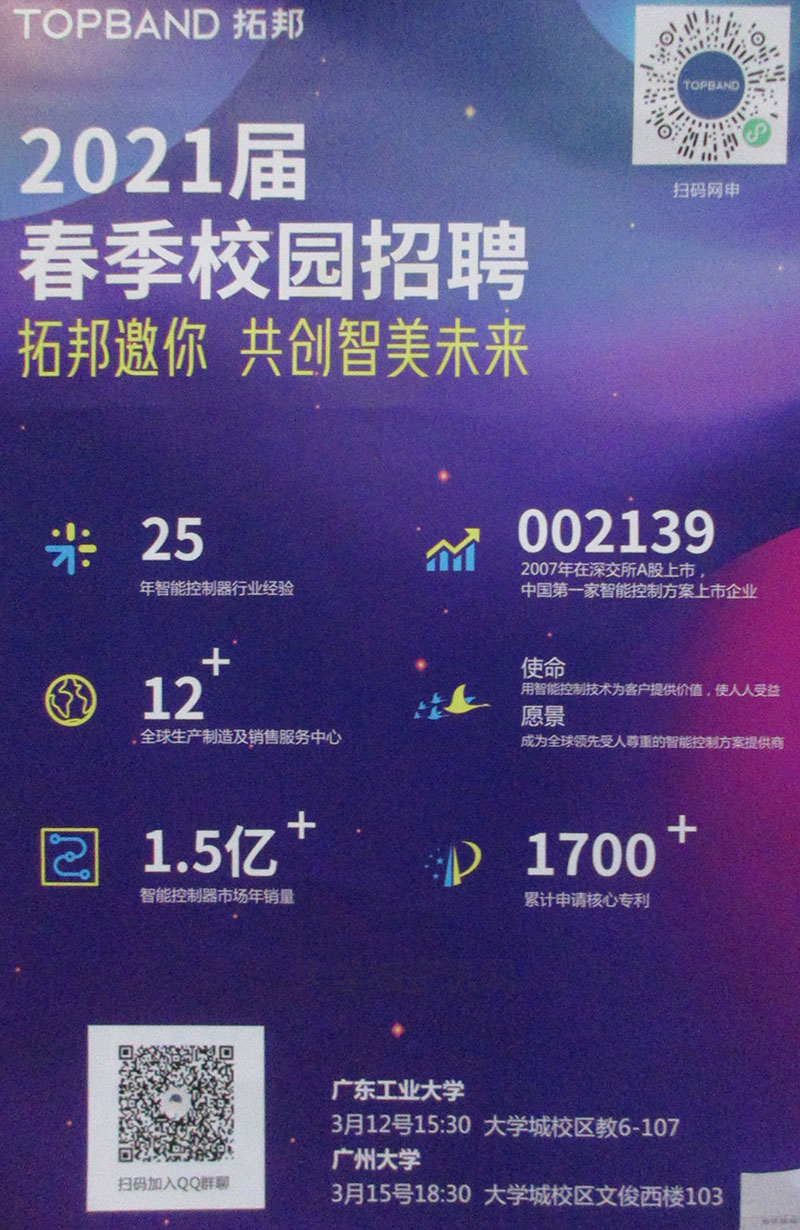 | TOPBAND拓邦2021届春季校园招聘 | ||||||