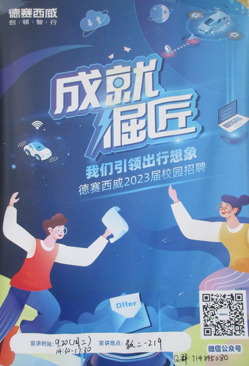 德赛西威2023届校园招聘宣讲会 9.20周二下午14点30分-17点30分 教学区教2-219 Q群714895080 |