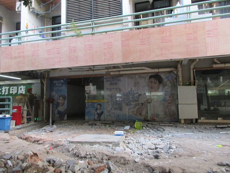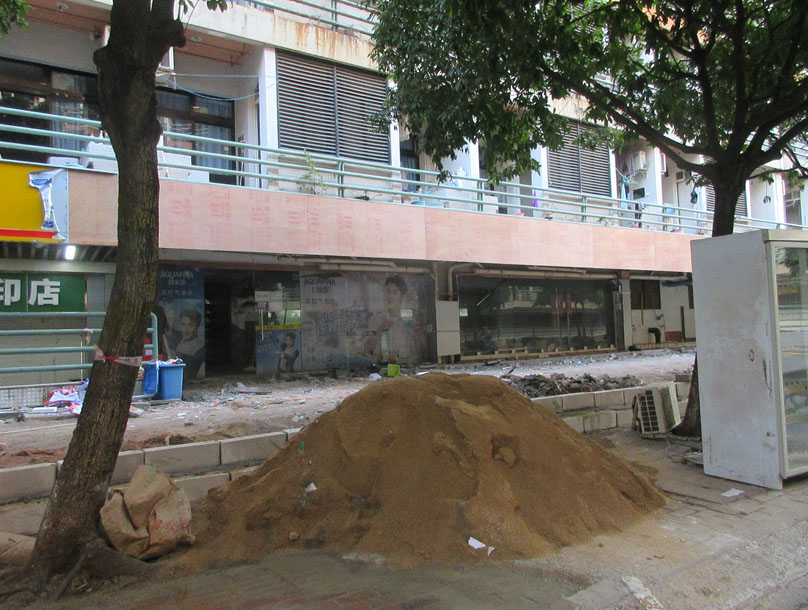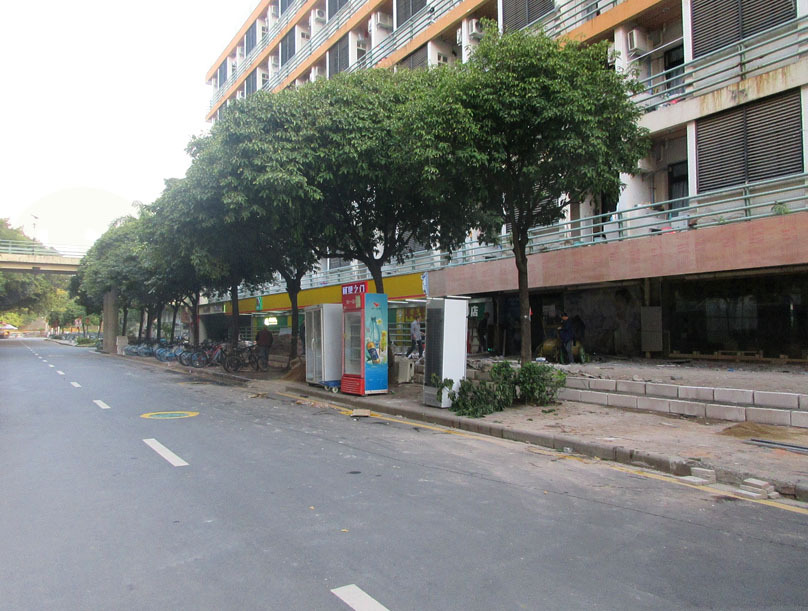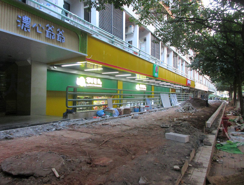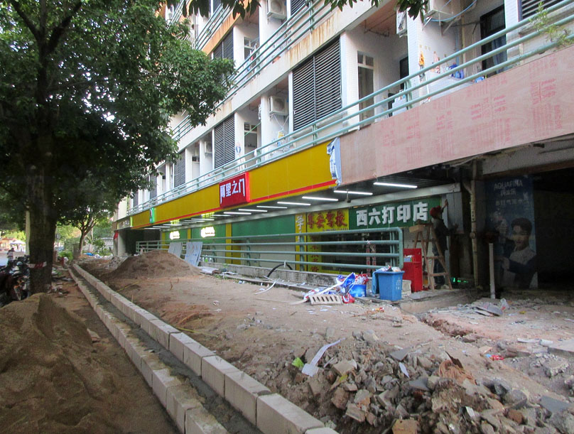 除了本身的商铺在装修外,店门前原来的绿带or辅道,也同时在相应改造升级