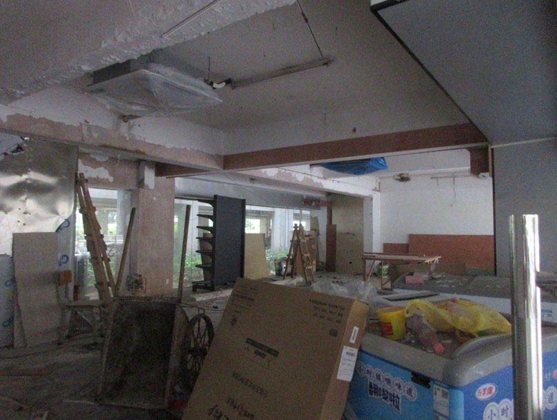 | 西区六栋北座一楼临街铺位新装 中间铺位看着也已基本装好 其中零食店装好并正在开试营业 | ||||||