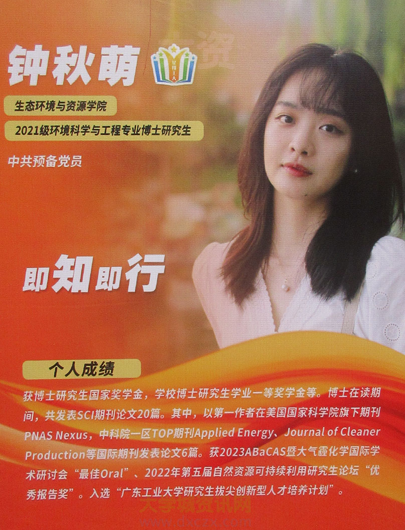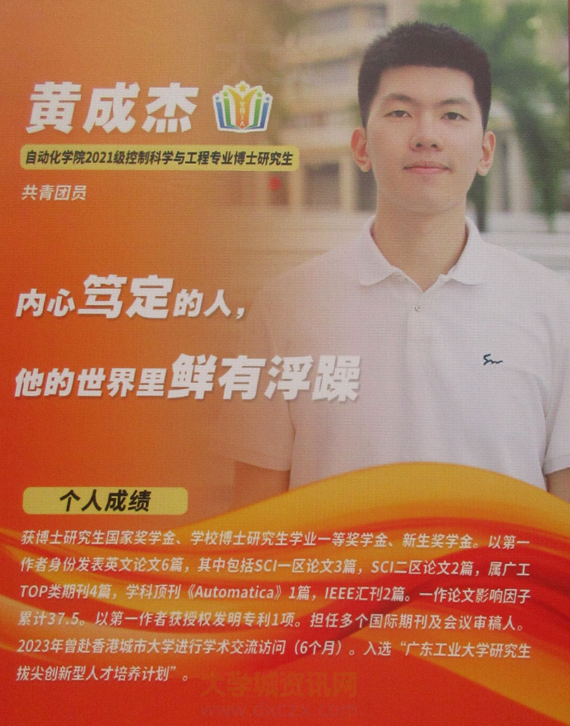 最新看到有个广东工业大学第九届校园之星评选活动应该是已经评选出来的本科生和研究生各十大谓之攀撑学子-呈显展示 本科生: 机电20级-黄海健 轻化20级-黄雪儿 土木20级-胡子豪 计算机20级-王伟杭 材能20级-李卓明 外国语20级-孔子欣 艺术20级-蔡奕辉 建筑19级-孙杨炀 经济20级-赵斐然 集成20级-陈聪玮 研究生: 机电21级-熊强 自动化21级-黄成杰 轻化21级-陈国威 信工21级-韦怡婷 土木21级-冯源 计算机22级-姜达成 数统22级-肖云浩 物理22级-张润青 艺术21级-肖明艳 生态21级- 钟秋萌