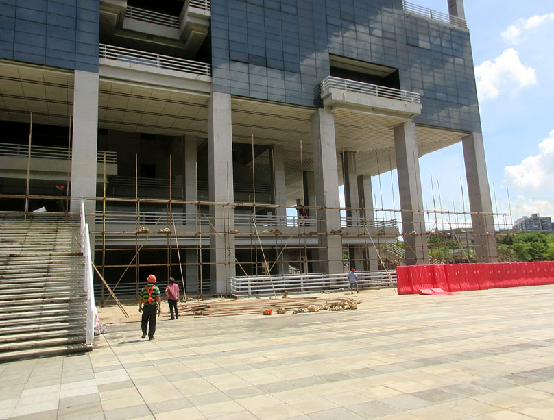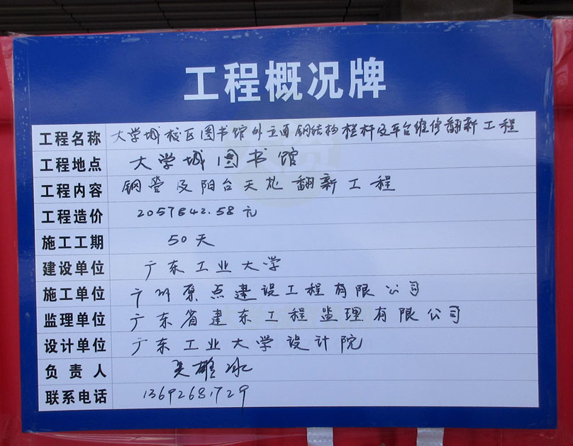 广工图书馆好像四周外立面都在围蔽施工 说是栏杆及平台维修翻新