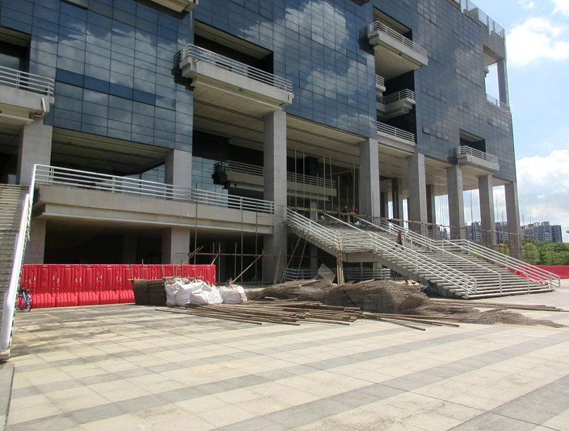 | 广工图书馆好像四周外立面都在围蔽施工 说是栏杆及平台维修翻新 | ||||||