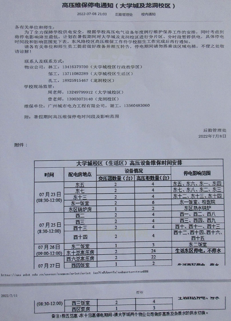 广工大学城生活区高压维保停电通知 |