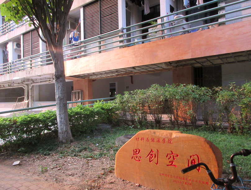 最新看到,西区西七栋楼下南列中间部分临校道架空层,目前似乎是在装修拓建作叫材能学院思创空间,是不是又有些类似教学区的那样的众创空间形态亦或更像自习室?不过看着估计是比较只属于材能学院私用的了,其它学院的学生未必会共享