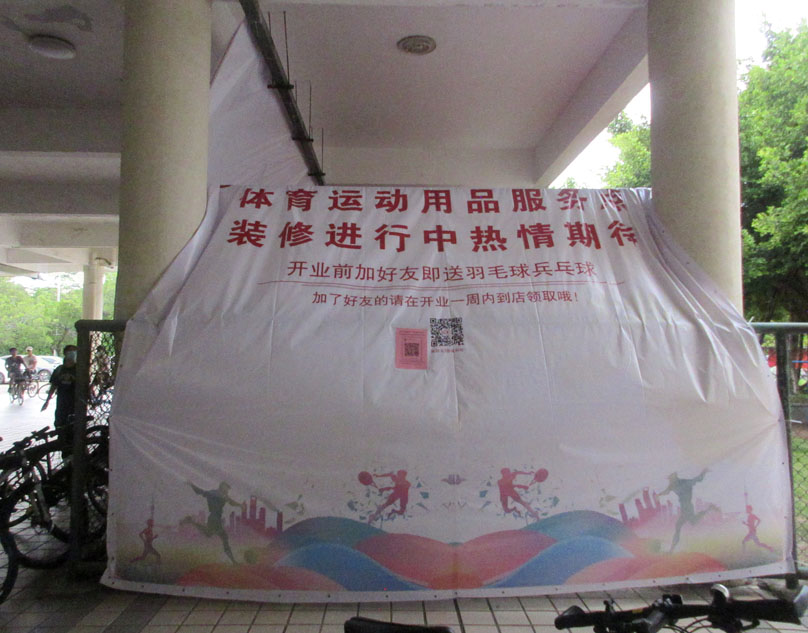 中心田径场西北角,看台北侧后上二楼楼梯下 这里居然好像在装修一个体育用品店还是什么服务中心,应该也是卖的吧,反正它都在装修中