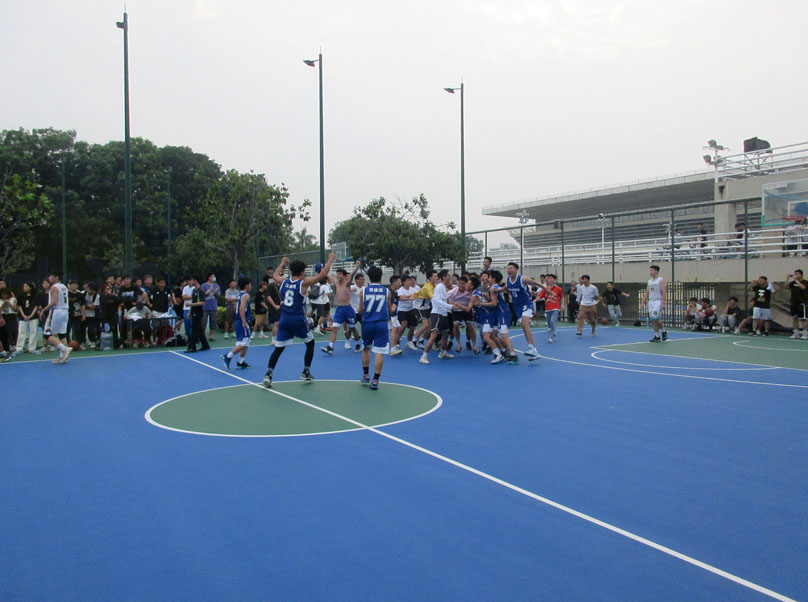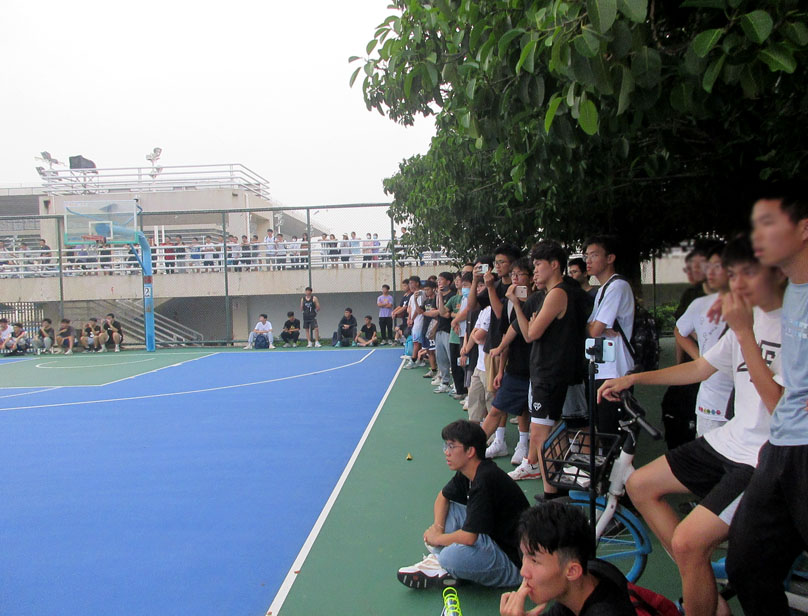 综合来看,四场四分之一决赛,除了今天土木和材能这场,另外三场比分差都在15分多左右,实力差距还是比较明显的,实际情况也反映出来,今天这场土木和材能的对决,现场引来了相当多球迷和各自粉丝围观,现场气氛热烈亢奋,客观上这两队都实力不俗且算接近,两队都有不少是校队的可称得上“明星级”的球员,像土木场上的周富恒、安沙尔等就是过去几年校队的主力,周富恒更是人气非常高的(听说人气不低),可惜今天最后时刻,能抢投博到三分犯规(先不说这个犯规是否算牵强),已算实属不易,当时他的庆祝造三分犯规成功的手势动作,看着应该是挺有信心后面起码罚进个两分打平甚至三罚全中绝杀带走比赛的,实际情况是,我们都看到了,三个罚篮一个都没进(最后一个想故意罚不进抢板补二分能理解,但居然框和板都没打碰到,只是刷了一下篮网出了底线,球权给回到材能手上,时间所剩几秒不超过5秒,结果可想而知,此时,材能算是更淡定了,一个快发还抢成了,再锦上添花拿个两分,最终比分定格61比57),可能是现场围观的气氛真的是太亢奋了,场上球员都不可避免完全不受影响或干扰,按说周富恒这样一个水准的球员,罚球命中率上也不能说低的