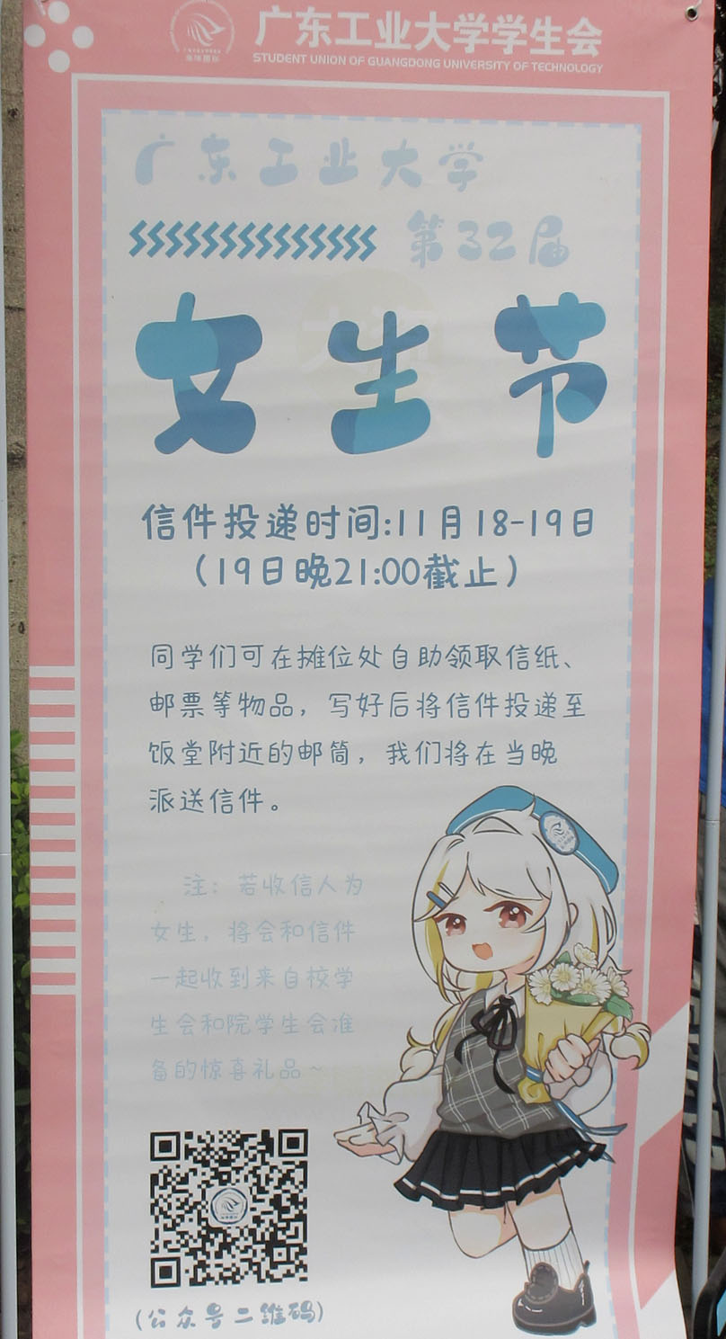 | 广工第32届女生节活动-爱的邮差 信件投递时间:11月18日-19日晚21点 | ||||||