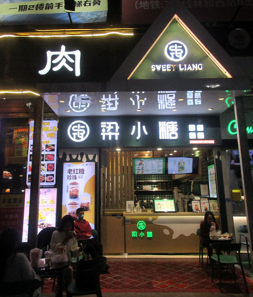 新天地正门广场东 原始烤肉店门外侧 梁小糖奶茶店 老红糖珍珠系列推荐:老红糖珍珠牛乳、老红糖珍珠奶茶、老红糖珍珠奶绿
