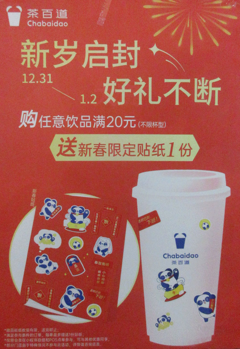 | 新天地西街内列中 茶百道 首款牛乳生酪系列 生酪鲜草莓&茉莉生酪奶绿;元旦假期,购任意饮品满20元送新春限定贴纸1份 | ||||||