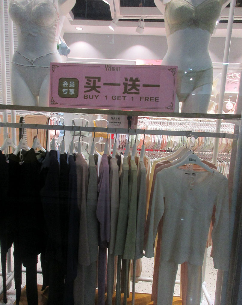新天地二楼内东廊道中 Y8内衣店 会员专享-内衣买一送一、买二送二;女生睡衣49元起、精品内衣99元2件、内裤49元4条