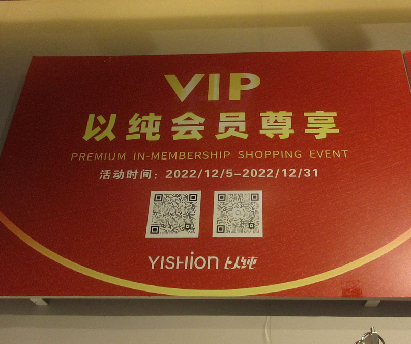 | 新天地二楼内西廊道中南 以纯专卖店 VIP会员尊享 两件8折 活动期2022.12.05-2022.12.31 扫码了解更多 | ||||||