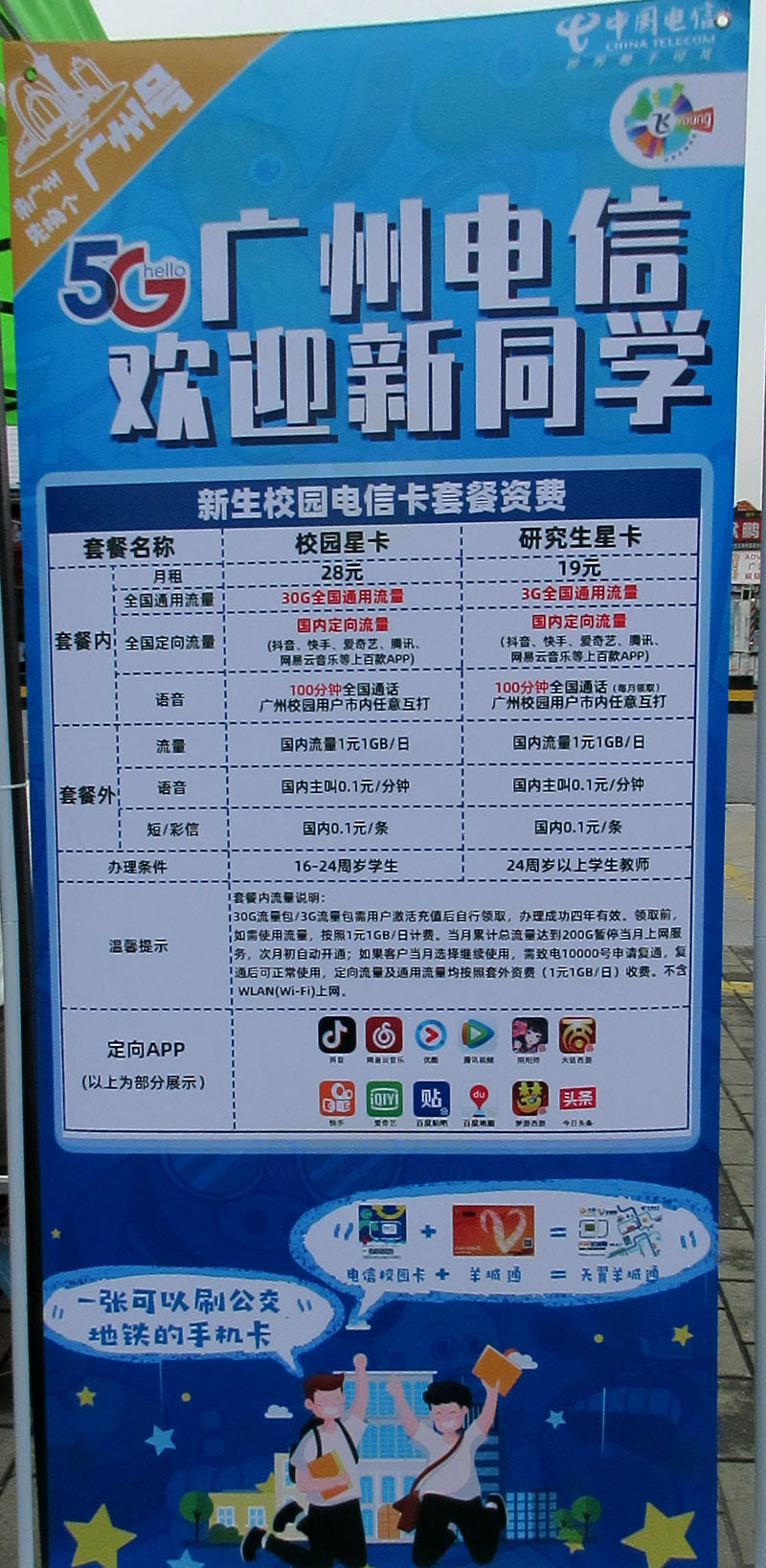 | 开学期间,GOGO正门,运营商三大家一字排开,推宣领卡、办卡、套餐服务等 | ||||||
