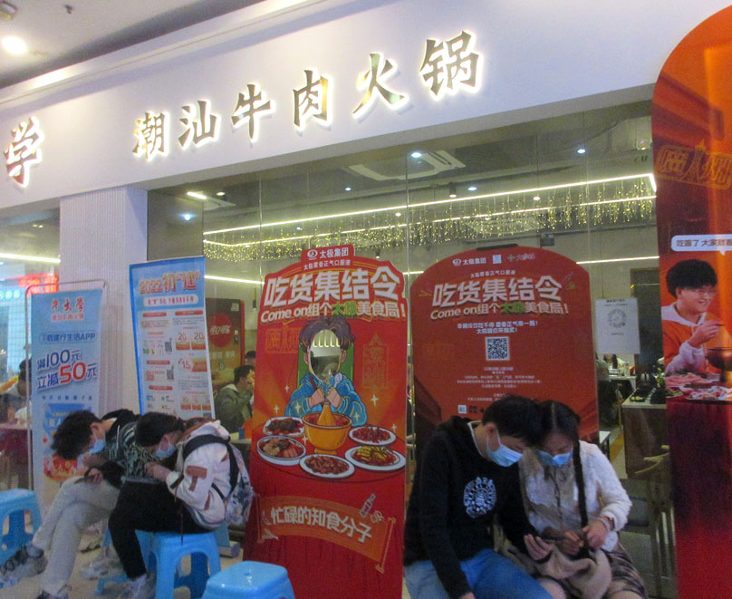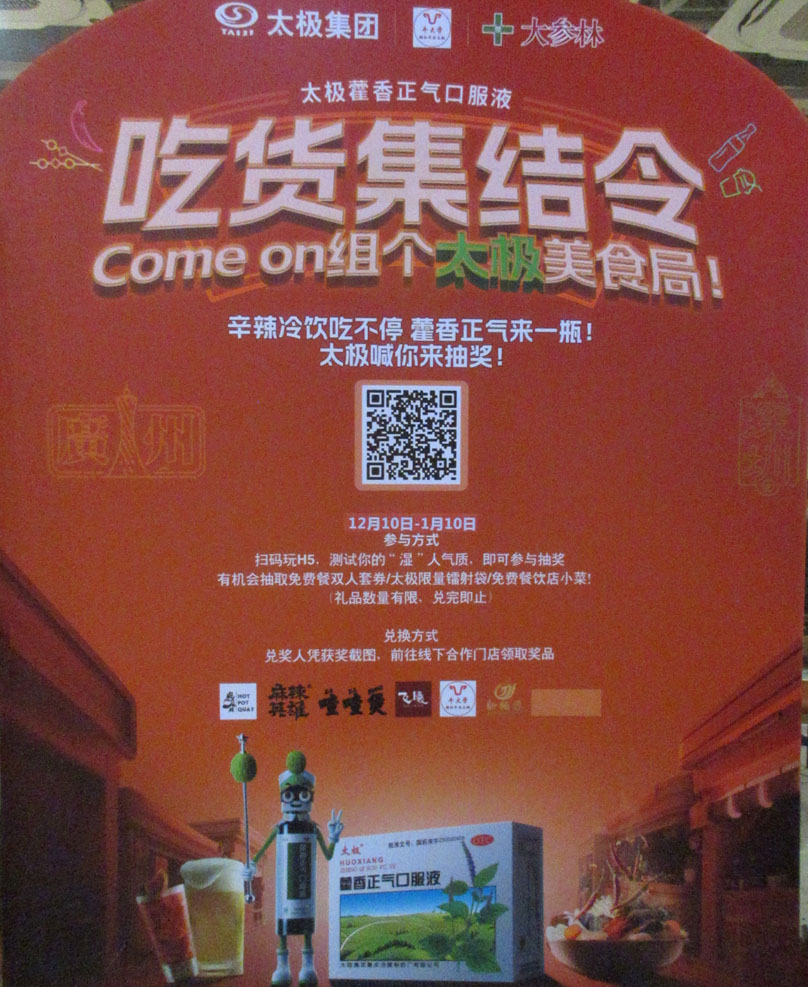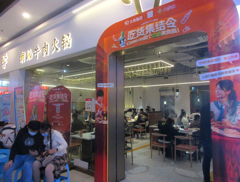 新天地二期新翼南门入 牛大学店门外看到有个合作抽奖活动:有机会抽取免费双人套餐券及餐饮小菜等