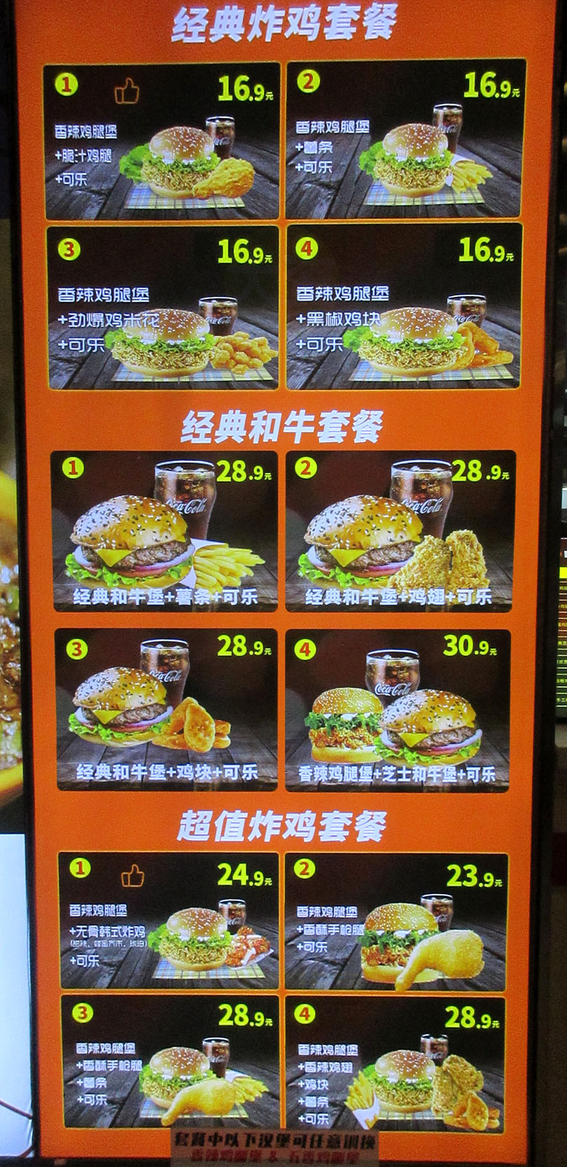 新天地三楼餐饮区南东列中 喀秋莎俄式手工鲜肉汉堡 经典炸鸡套餐、经典和牛套餐、超值炸鸡套餐