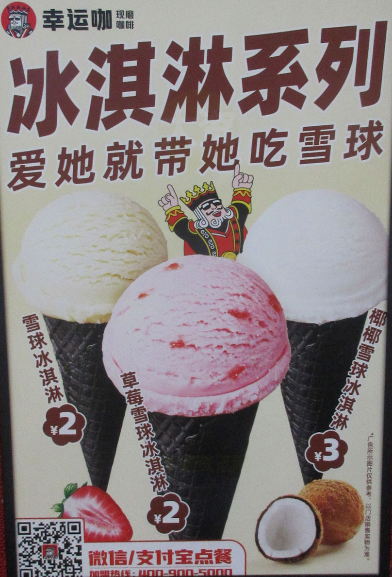 GOGO西街外列北 幸运咖 冰淇淋新品上市新增 雪球冰淇淋2元+椰椰雪球冰淇淋3元 扫码下单免排队