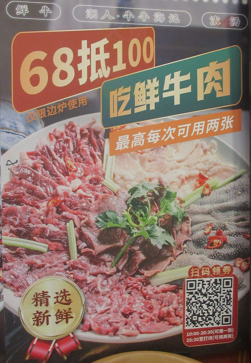 新天地二期二楼南&西外廊道 潮人牛牛·牛杂店 鲜牛杂29元 抵用券68元抵100元 最新已有宵夜供应