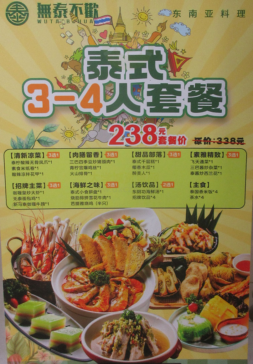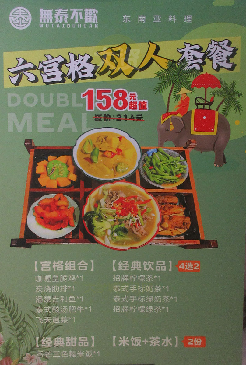 | 新天地二期二楼中&西外廊道 无泰不欢 多样双人套餐 3-4人套餐 价格配菜等览看 | ||||||