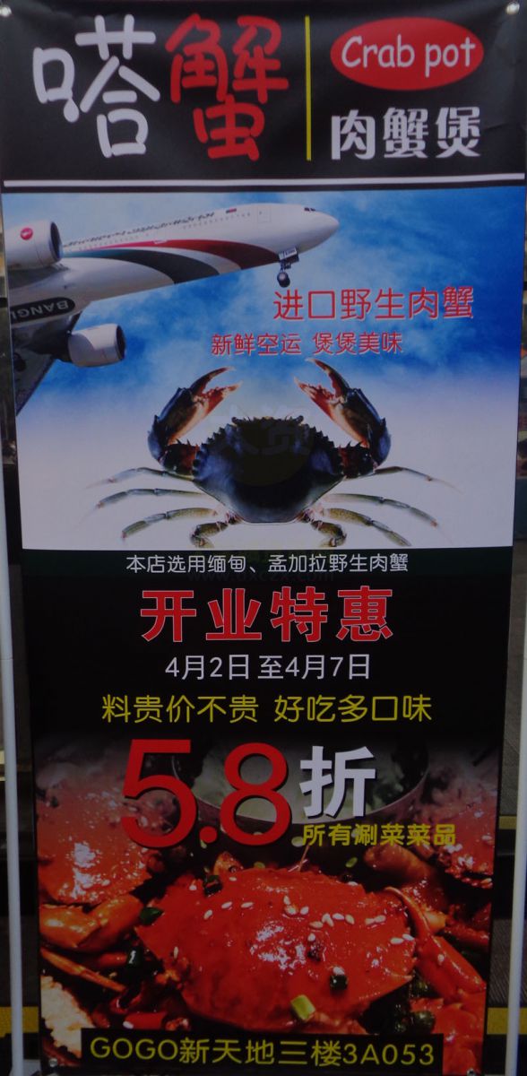 | 新天地一期三楼北-嗒蟹肉蟹煲开业特惠 | ||||||
