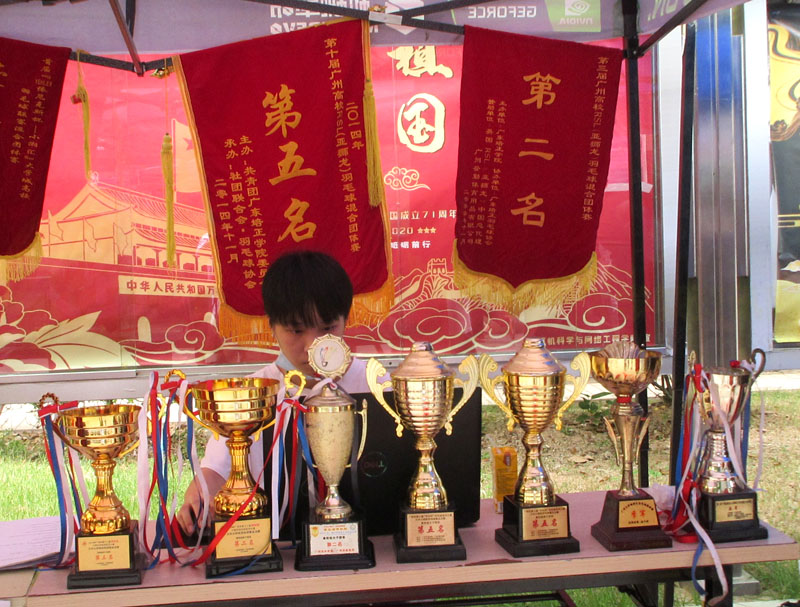 | 招新现场-羽毛球协会 奖杯不少啊 | ||||||