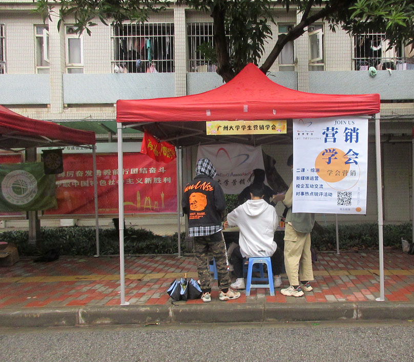 广大2022百团招新 摊位现场之学生营销学会&投资学会 具体位置兰苑2栋南侧辅道中偏西