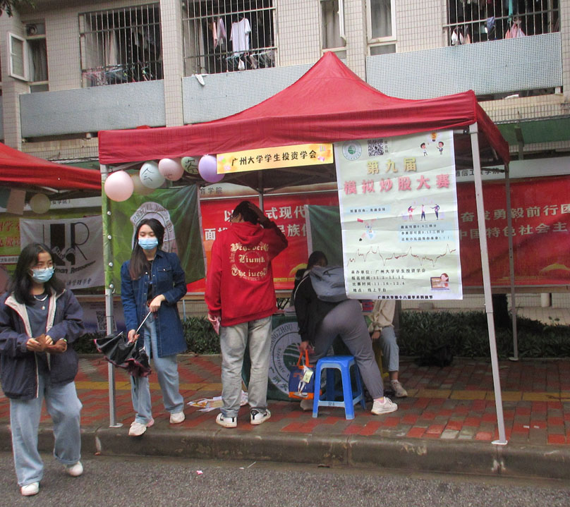 | 广大2022百团招新 摊位现场之学生营销学会&投资学会 具体位置兰苑2栋南侧辅道中偏西 | ||||||