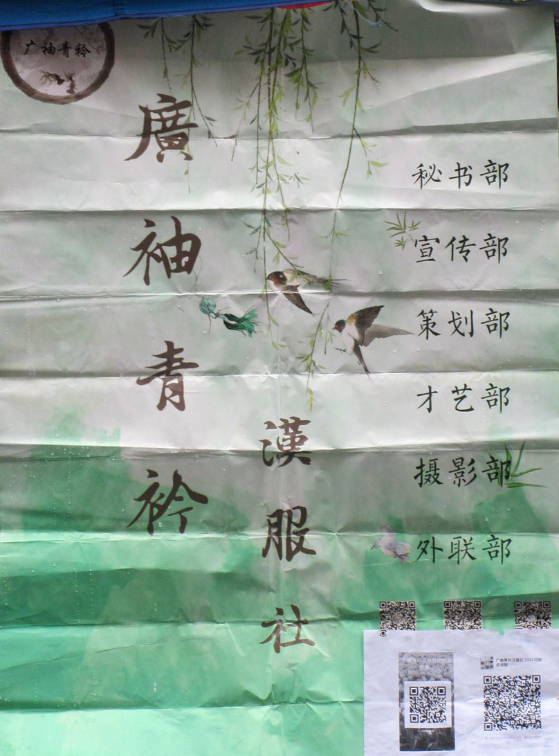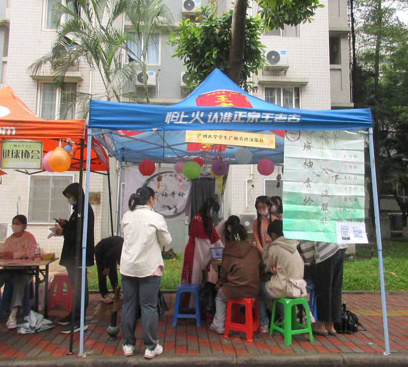 广大2022百团招新 摊位现场之学生毽球协会&广袖青衿汉服社 具体位置榕轩3栋南侧辅道中间