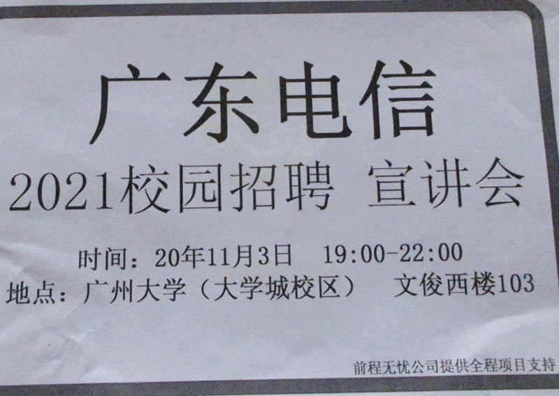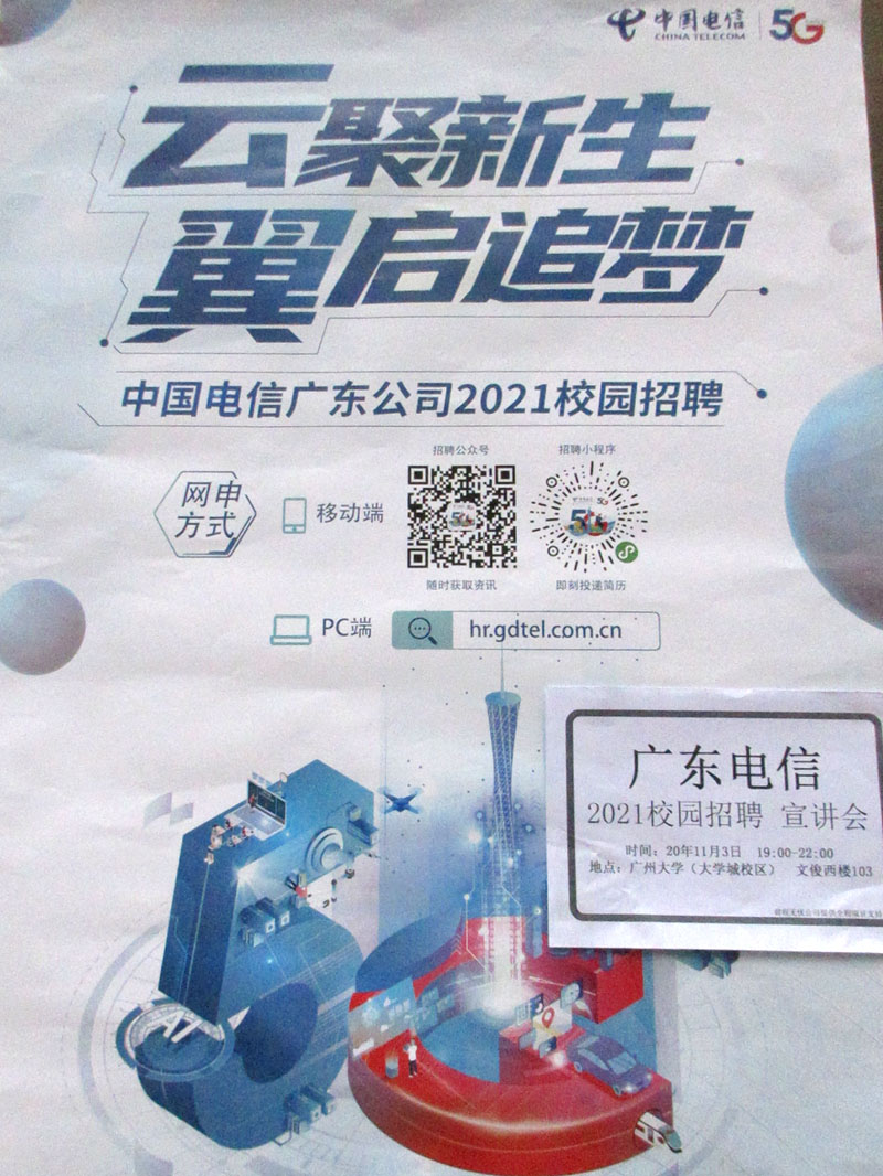 | 中国电信广东公司2021校园招聘宣讲会预告 | ||||||