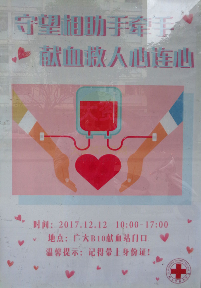 | 守望相助手牵手 献血救人心连心 B10献血站门口 12.12 10:00-17:00 | ||||||