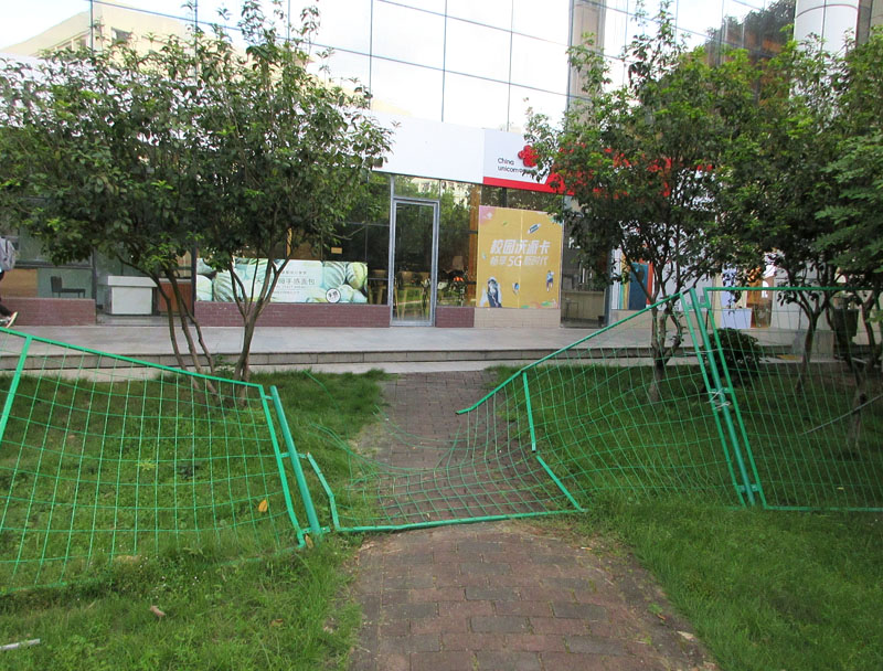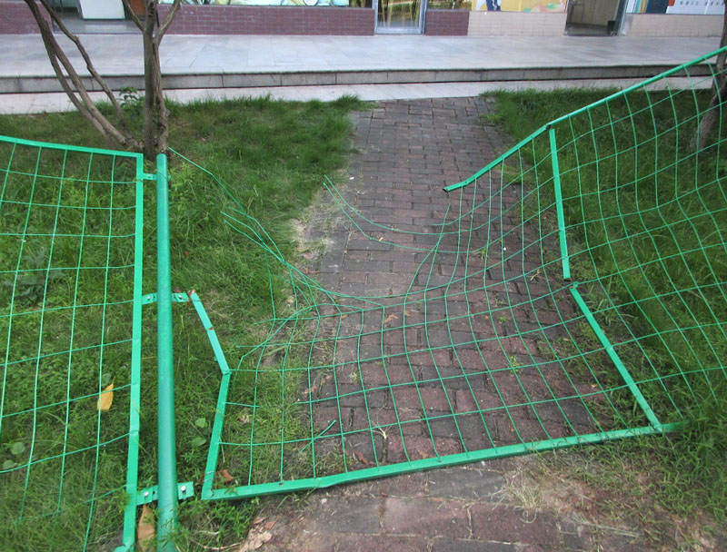 | 商中D区东原绿叶居店面对出围栏已经被踩出一个口了,昨天还是半塌状 | ||||||