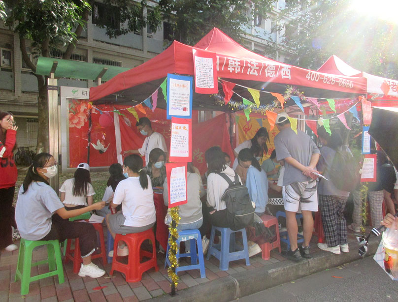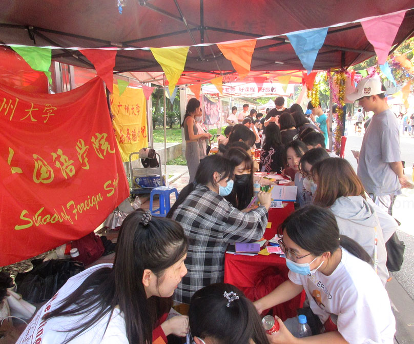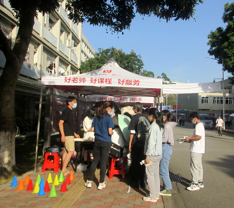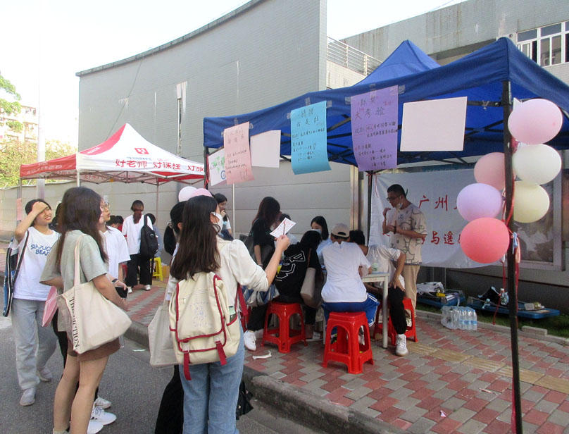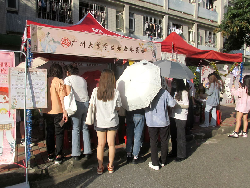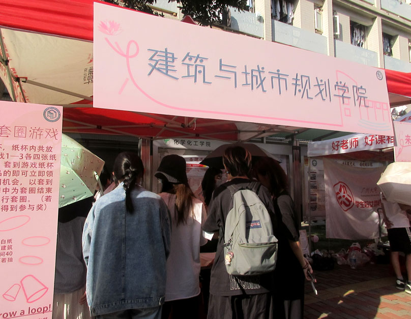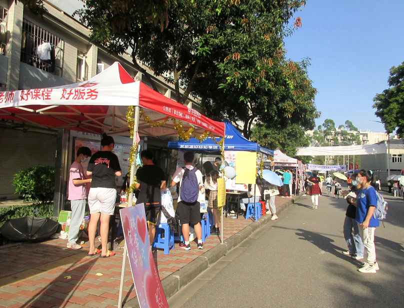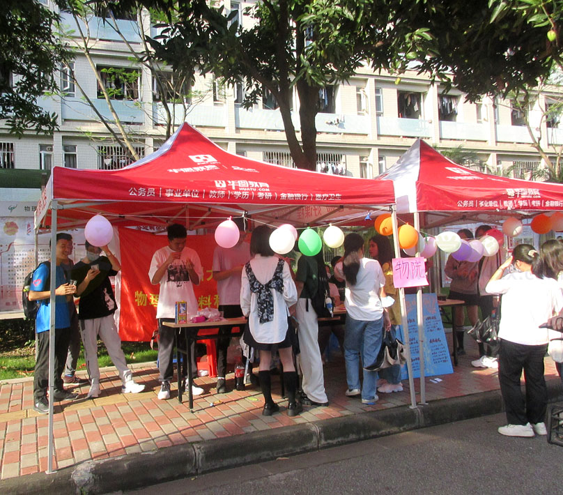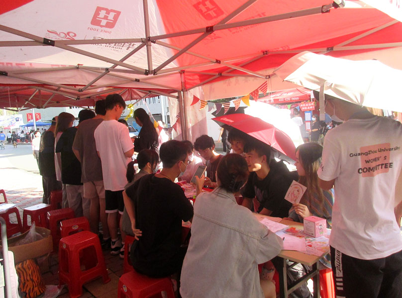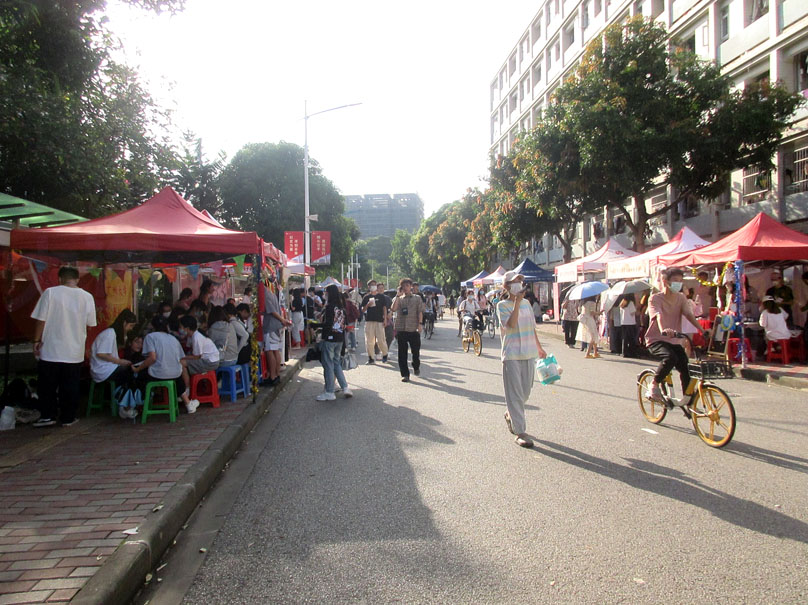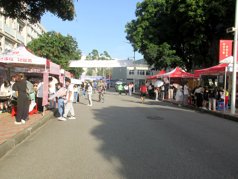 今天的生活区红棉路中段还是非常热闹的,有个广大已经是第十九届的桃李年华活动 很多学院都有出摊参与 摊位现场有益智类答题、猜谜、游戏互动等,不少摊位见到同学们的参与热情都挺高的
