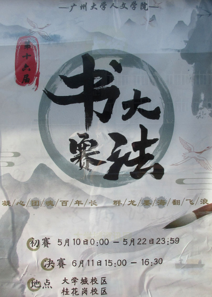 | 广大人文学院·第十六届书法大赛 初赛5月10-5月22日 决赛6月11日下午 | ||||||