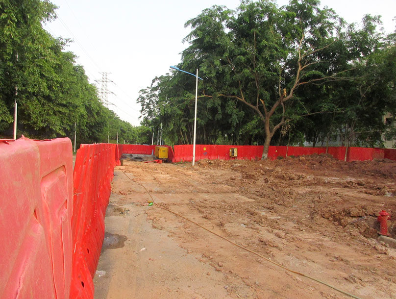 生活区菊苑4栋东北部&临环校路部分在进行围蔽施工 具体还不知是 又是类似前段时间教学区的室外管线挖掘?