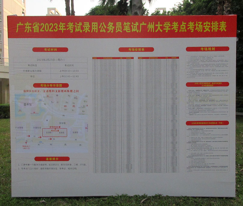 大学城广州大学明天将作为考场进行2023广东省公务员录用考试 附具体考试时间科目及考场试室安排表和分布示意图