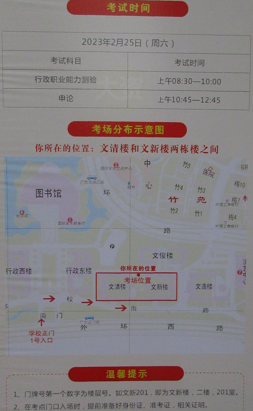 | 大学城广州大学明天将作为考场进行2023广东省公务员录用考试 附具体考试时间科目及考场试室安排表和分布示意图 | ||||||