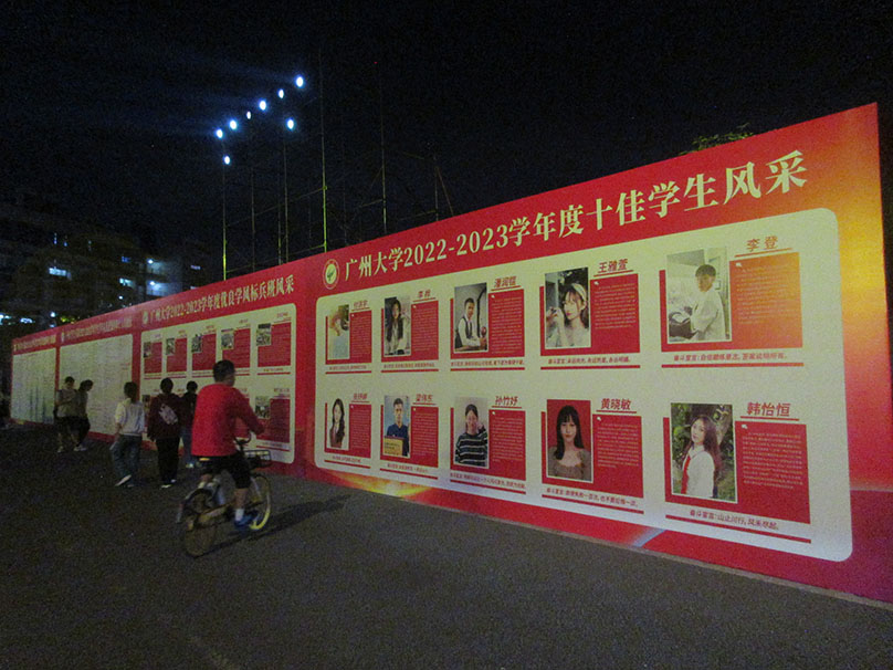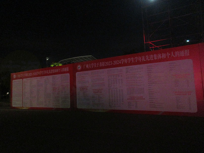 广州大学明晚12.05周二 将举行一个表彰学年礼先进集体和个人的晚会 在体育馆北侧外舞台广场进行
