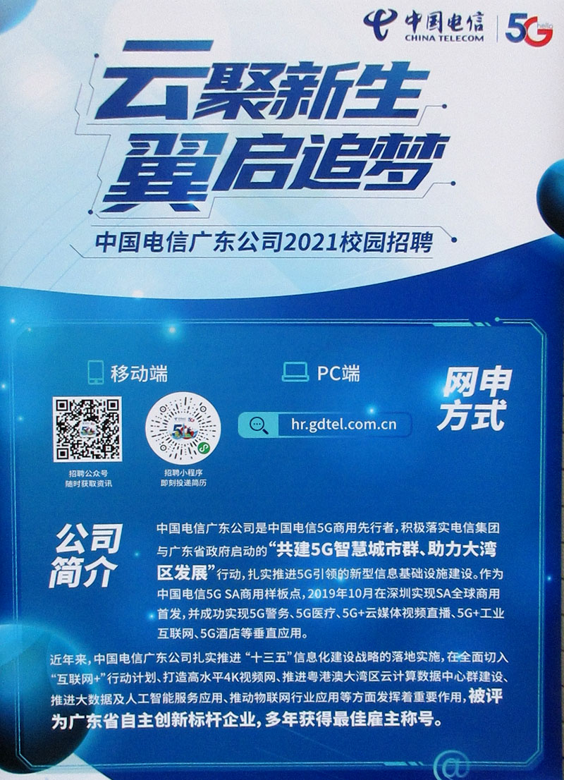 中国电信广东公司2021校园招聘宣讲会预告