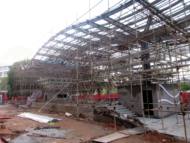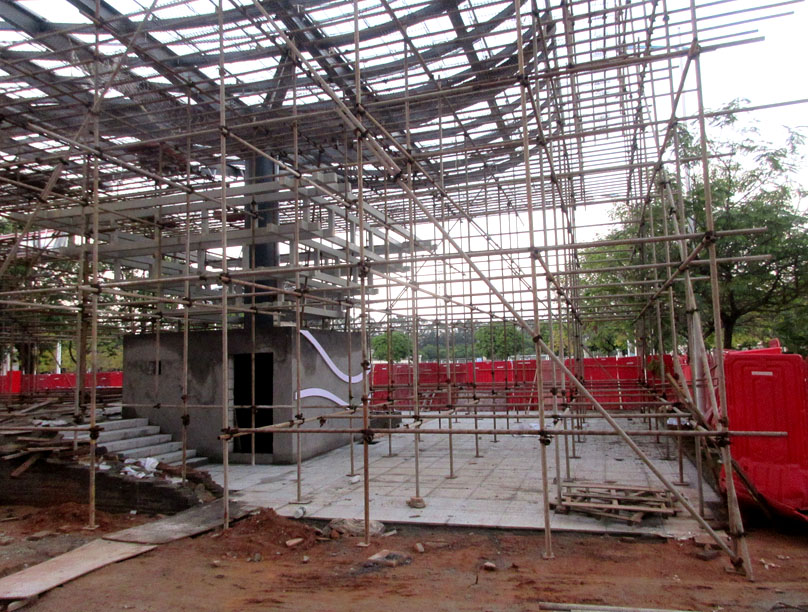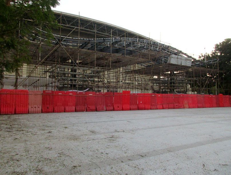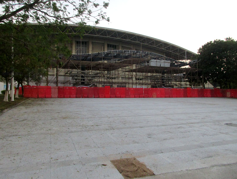 | 广大体育馆北侧的这个活动晚会演出&举行&表演场地&舞台的建造 最新看到前面的观众坐看部分已经铺设好了新的大理石地砖并已拆围,就剩舞台主体部分以及棚架还在围蔽,看着得还有待进一步 | ||||||