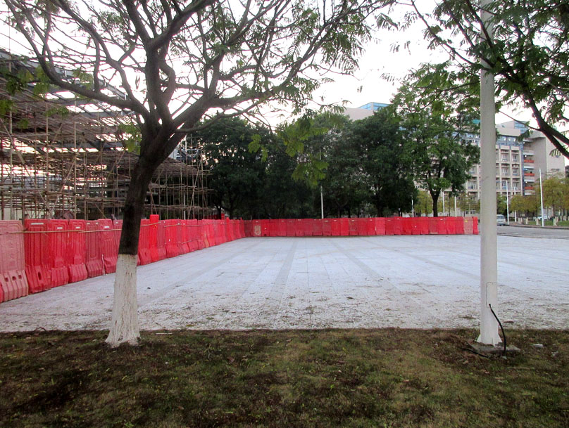 广大体育馆北侧的这个活动晚会演出&举行&表演场地&舞台的建造 最新看到前面的观众坐看部分已经铺设好了新的大理石地砖并已拆围,就剩舞台主体部分以及棚架还在围蔽,看着得还有待进一步施工完善,才能最终建好呈现