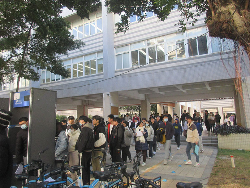 虽然阳光已经比较照射,但是天气依然还是算冷 应该有部分考生已经考完所有科目,下午不用再来了