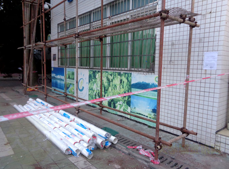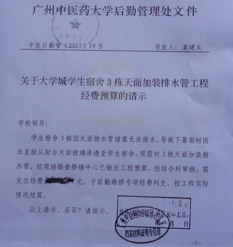 | 生活区学生宿舍3栋天面加装排水管工程实施中 | ||||||