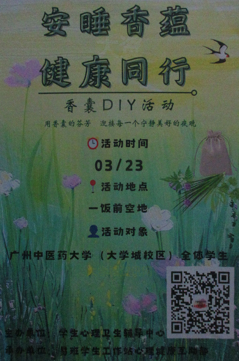 广中医-香囊DIY活动 2024.03.23 生活区一饭前空地 面向全校学生 |