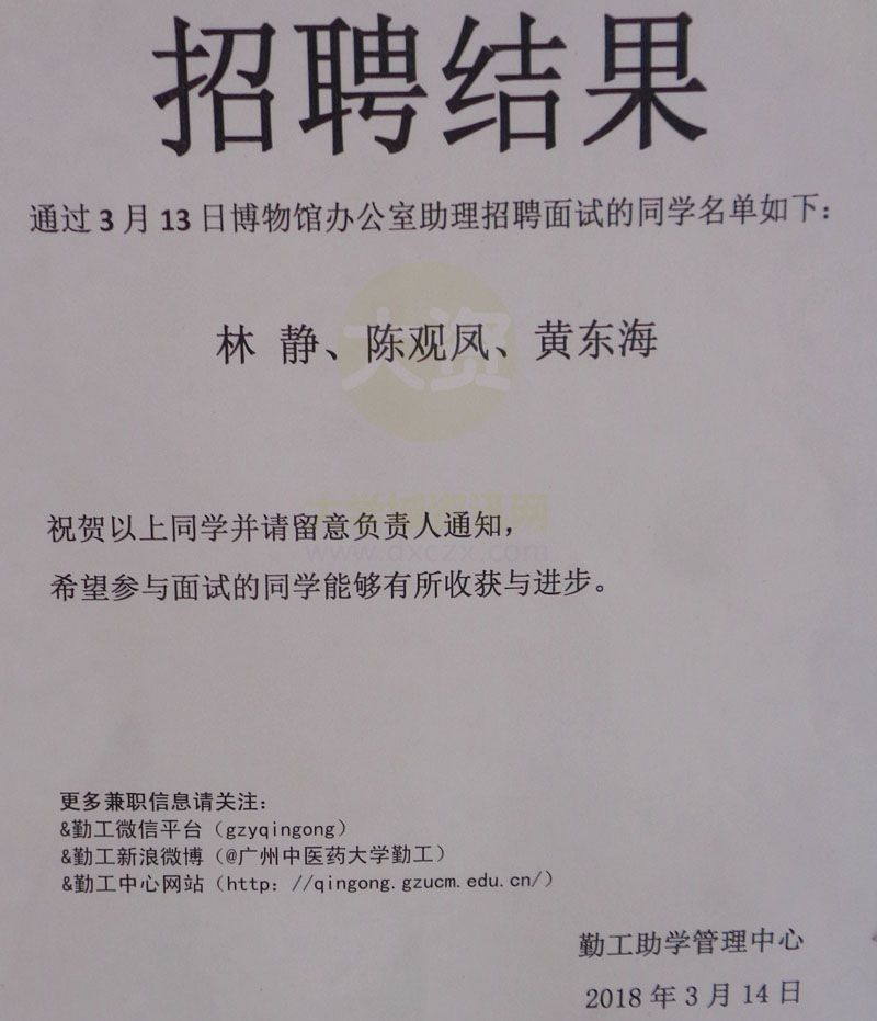 | [招聘结果] | 公布 通过3月13日博物馆办公室助理招聘面试的同学名单 2018年3月14日 | ||||||