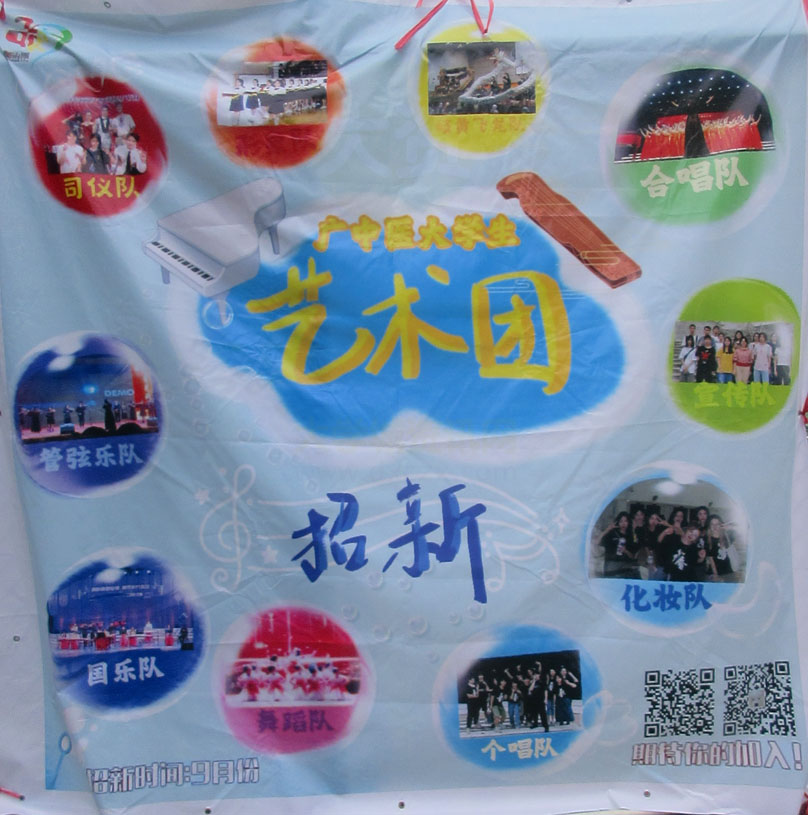 | 广中医大学生艺术团2023招新 时间:9月份 具体有司仪队 形象队 岐黄飞龙队 合唱队 宣传队 化妆队 个唱队 舞蹈队 国乐队 管弦乐队 | ||||||