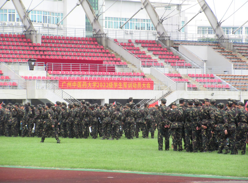 | 广中医2022级新生今天上午在教学区体育场开始进行军训动员大会和简单操练了一下 | ||||||